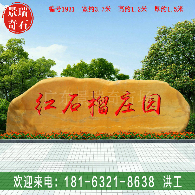 3.7米宽 广东产地直销黄蜡石 景观刻字石 编号1931