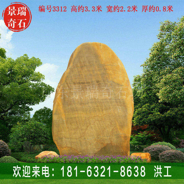 3.3米高广东园林景观黄蜡石 农庄刻字招牌石编号3312