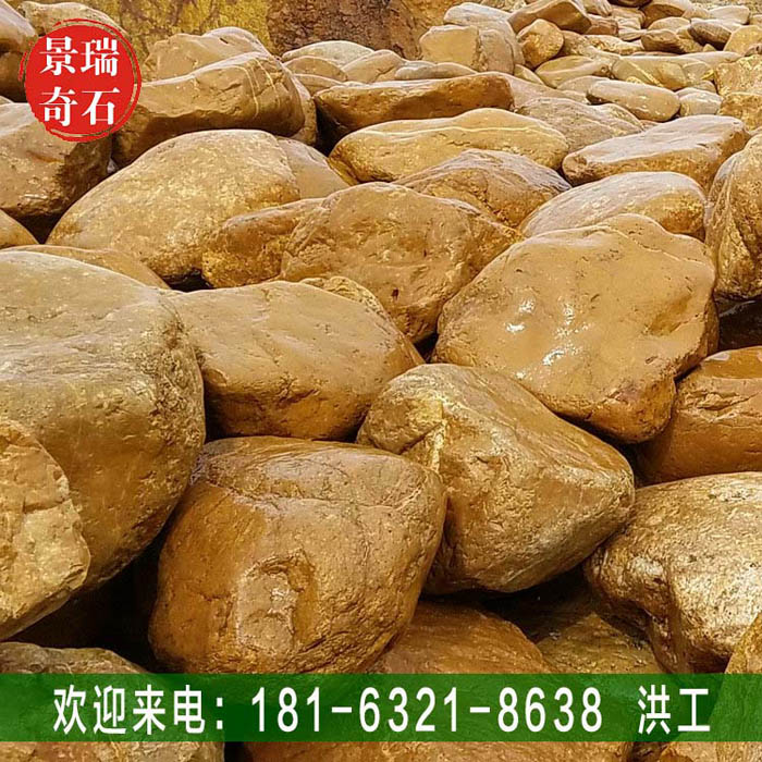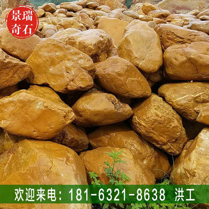 大量优质黄蜡石,这些黄蜡石形态各异、大小不一,大者数吨,小者如卵,一般都会与假山鱼池、草地点缀、驳岸流水等搭配,用于鱼池、水池驳岸者占多数,点缀在庭院或草坪内将是一道亮丽的风景,黄蜡石是最自然园林装饰。