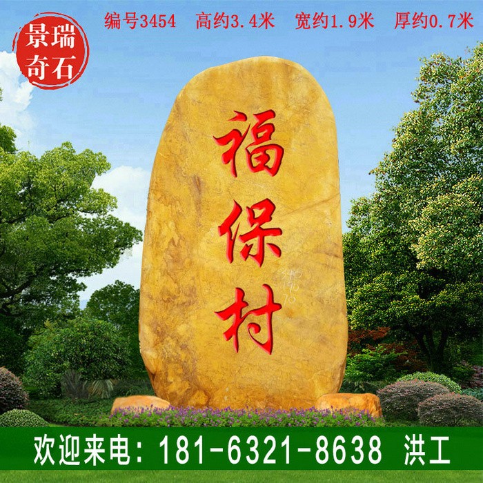 3.4米高厂家批发黄蜡石 村入口刻字石 编号3454